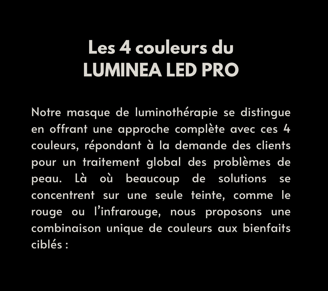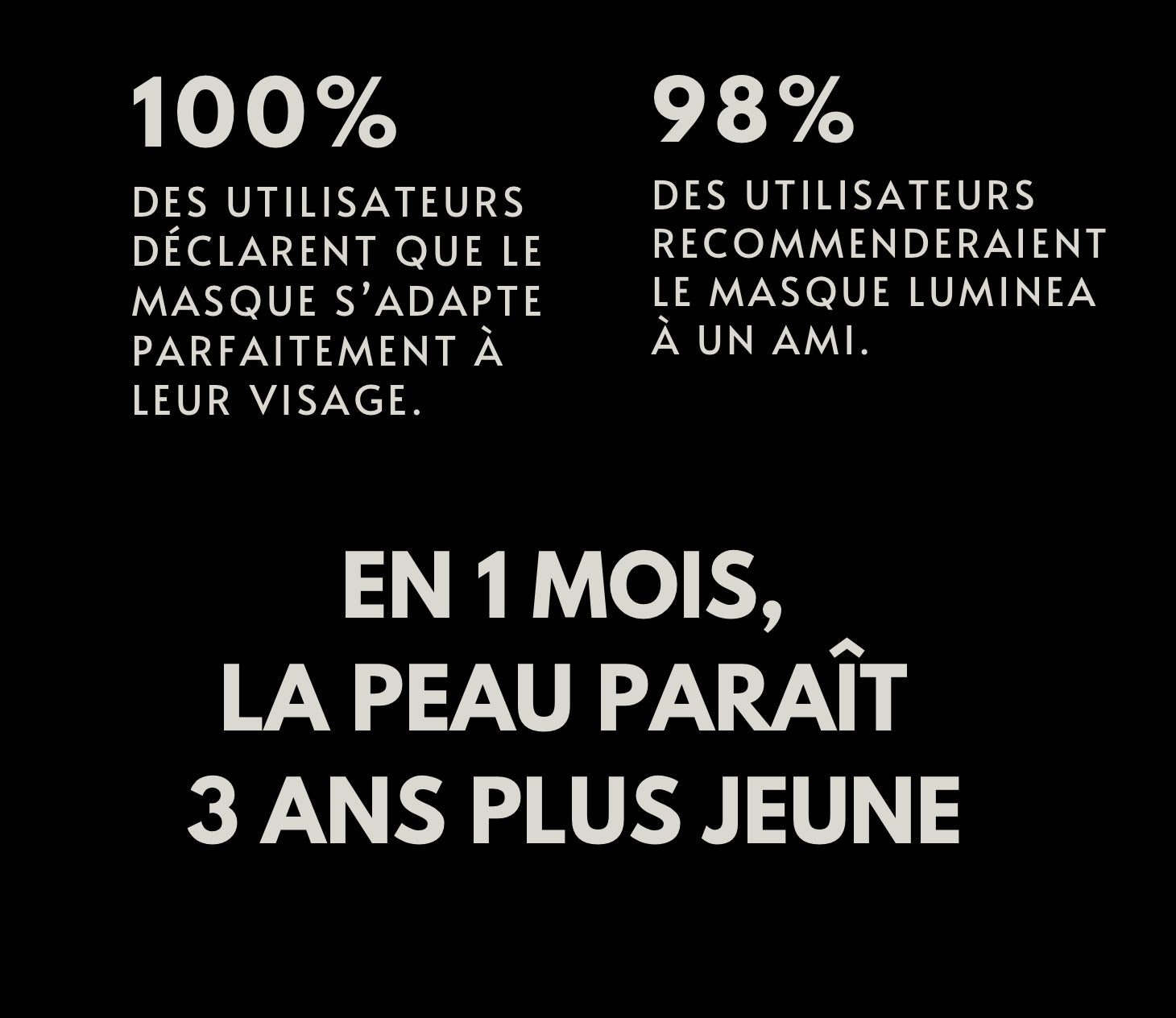 Nous recommandons l'utilisation du LUMINEA LED PRO à partir de 20 ans, avec des bénéfices renforcés pour les utilisateurs âgés de 30 à 60 ans.